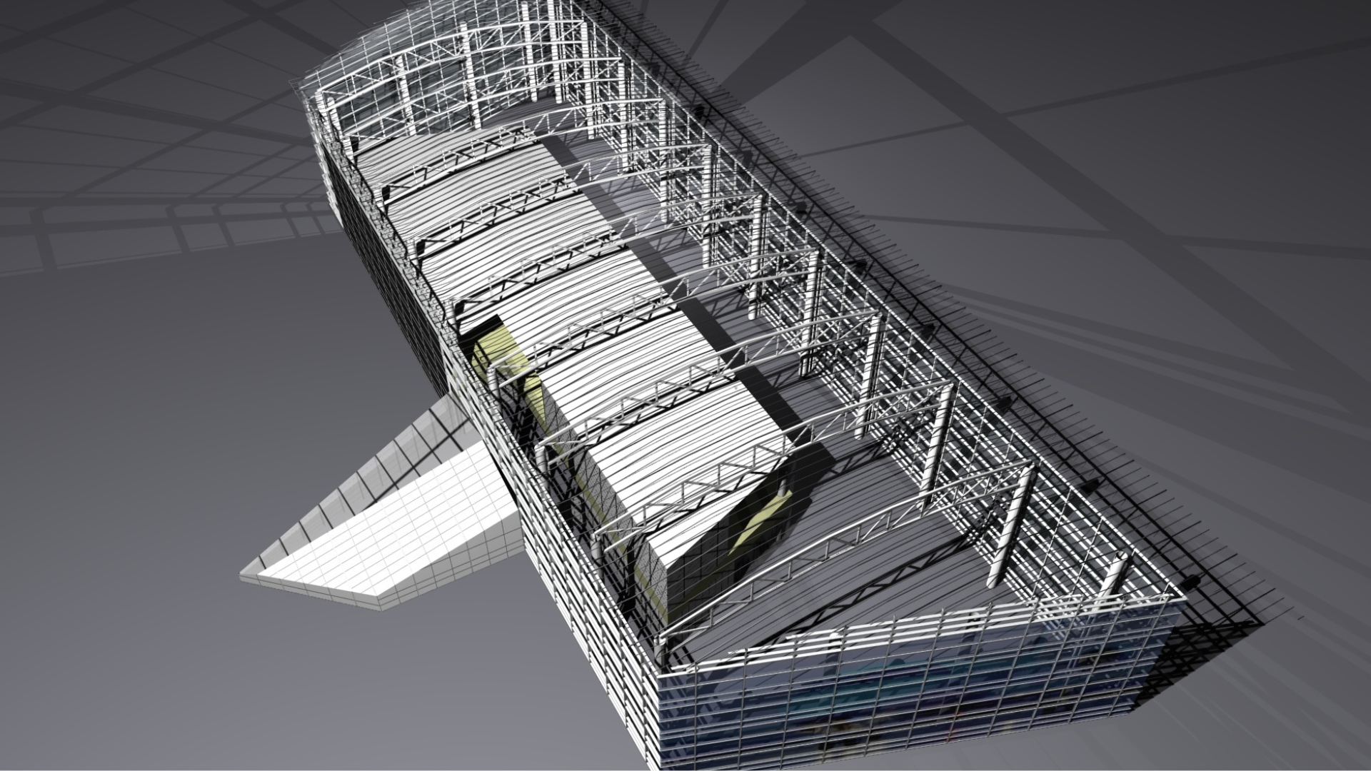 The proposed concourse featured curved steel trusses spanning the 78-foot building width supported by large round pipe columns. A partial intermediate mezzanine level consisting of open web steel joists and steel beams was supported by wide flange columns. The selection of pile foundations and a structured ground floor slab was driven by poor soil conditions at the site.