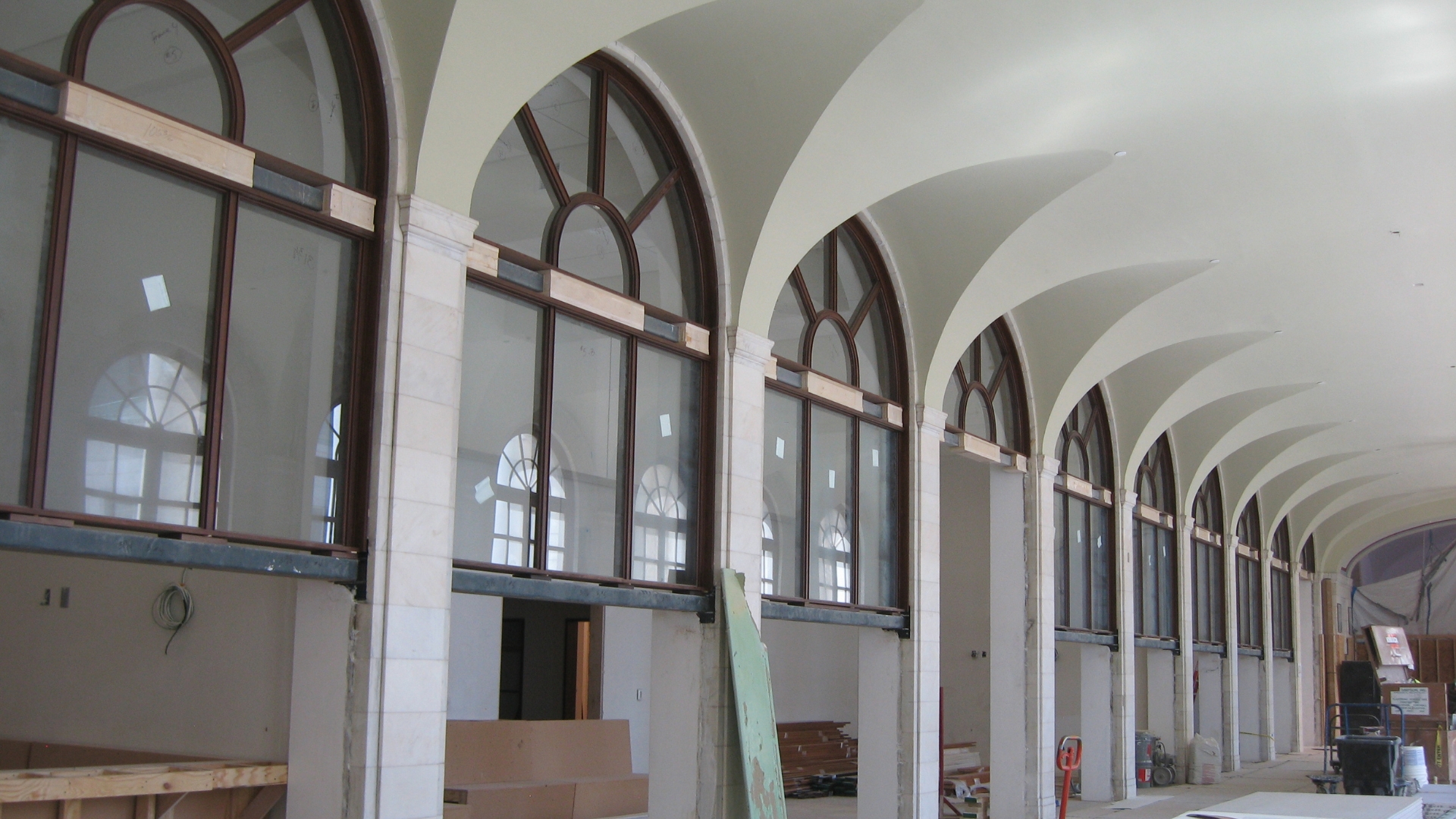 Transformation of a central courtroom with high ceilings